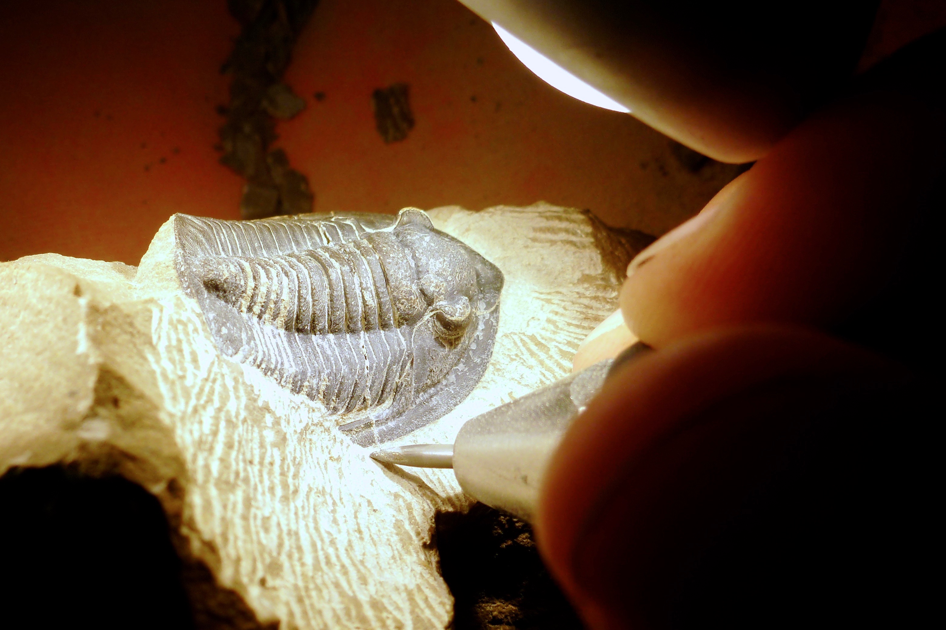Kom kijken naar preparatie-demonstraties, waarbij fossielen live uitgeprepareerd worden.